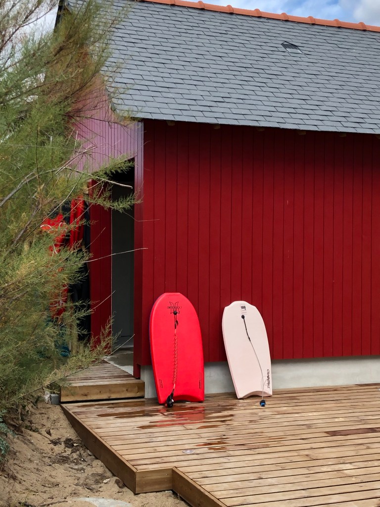 La terrasse côté mer : comment ne pas avoir envie de profiter de la vue sur le large pour déjeuner ou dîner sur la grand table installée sur cette terrasse, à deux pas de la cuisine. Mais cette terrasse est aussi le lieu idéal pour la bronzette et observer la plage. Elle permet aux plus petits de bénéficier du bord de mer sans prendre le risque du bord de l’eau et elle offre aux parents un excellent poste d’observation pour veiller sur les jeunes qui vont défier les flots.